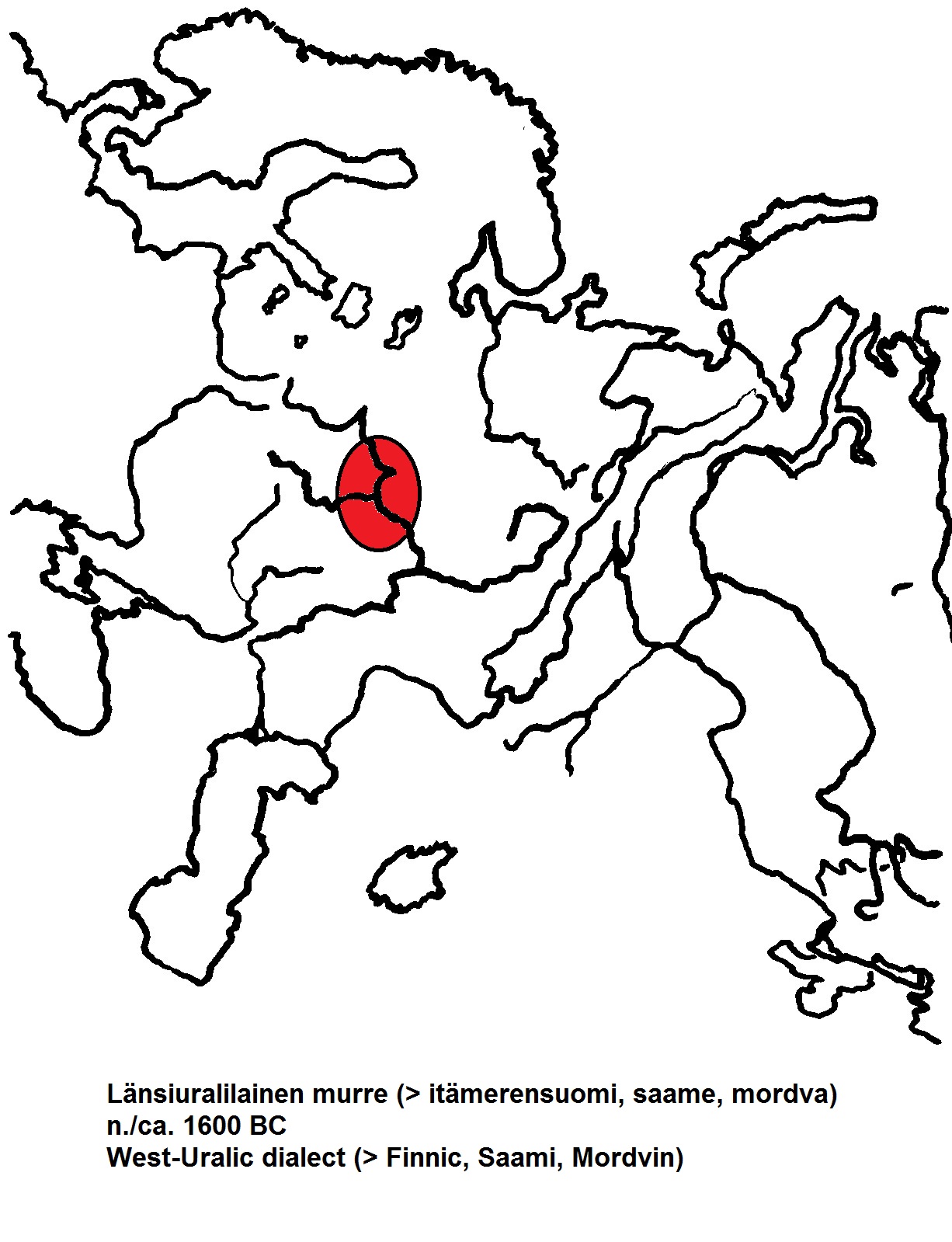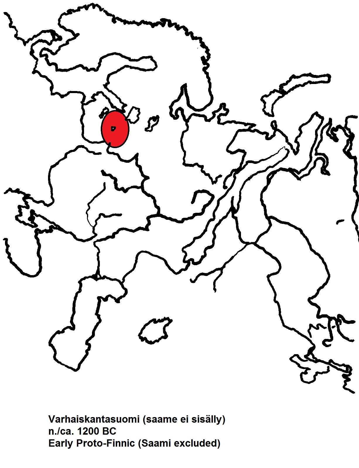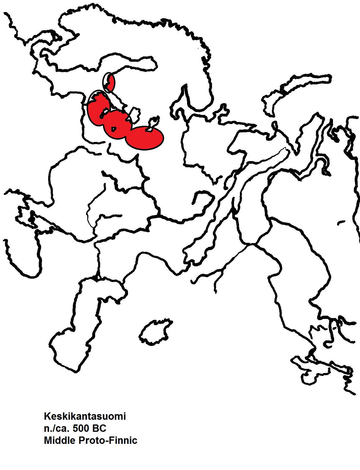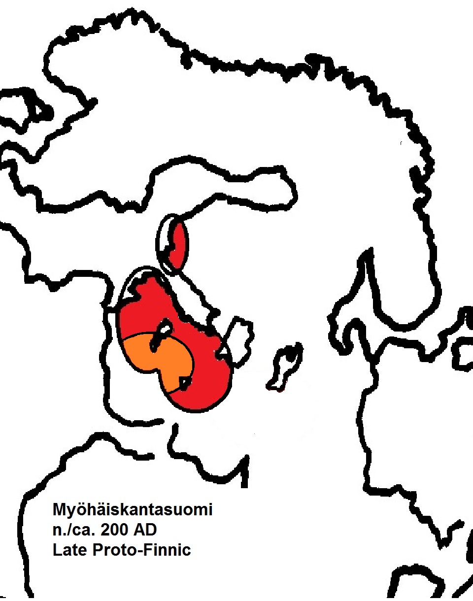 Many people have asked after the map showing the time and place of the pre-forms of the Finnish language, and with this graphically